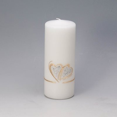 Hochzeitskerze Nr. 05Ø 70 mm H 190 mm, weiss, handverziert