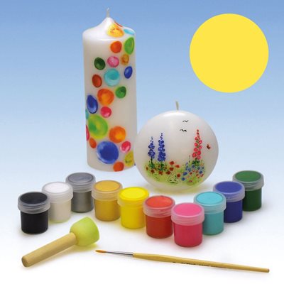 Zum Bemalen von Kerzen und Seifen mit Pinsel oder Schwamm. Die Farben sind untereinander mischbar.