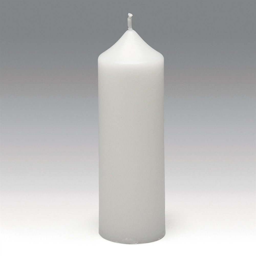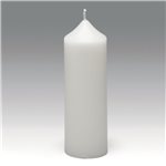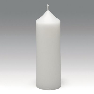 Weiss, handgegossen aus hochwertigem Paraffin/Stearin-Wachs (80/20).