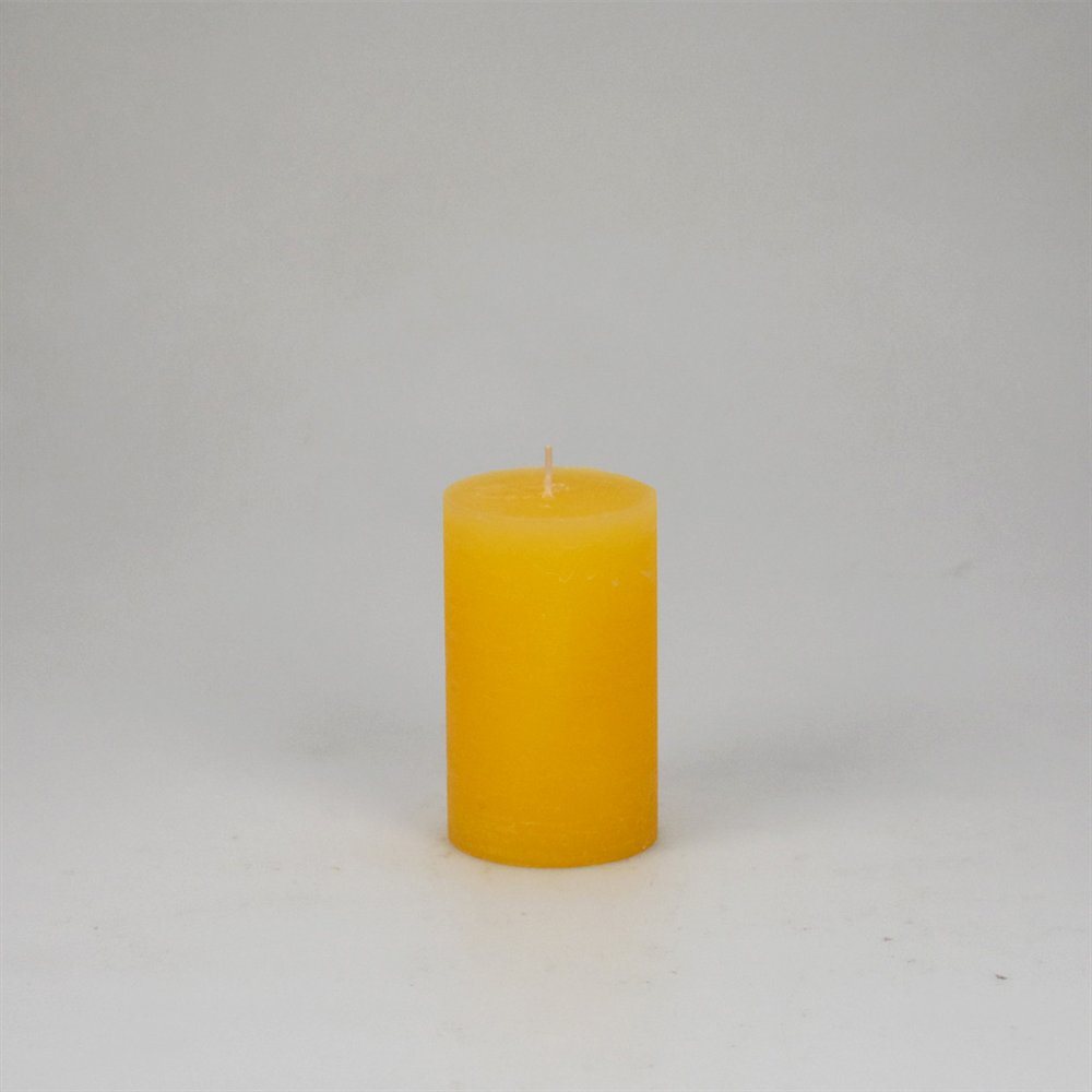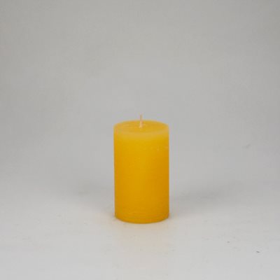 Handgegossene Kerze mit rauher/rustikaler Oberfläche.
