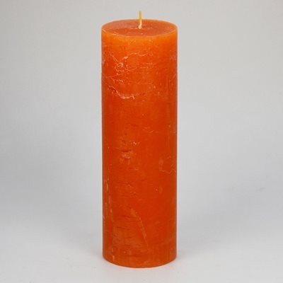 Handgegossene Kerze mit rauher/rustikaler Oberfläche.