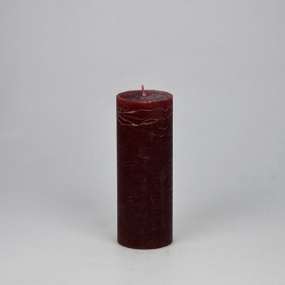 Handgegossene Kerze mit rauher/rustikaler Oberfläche.