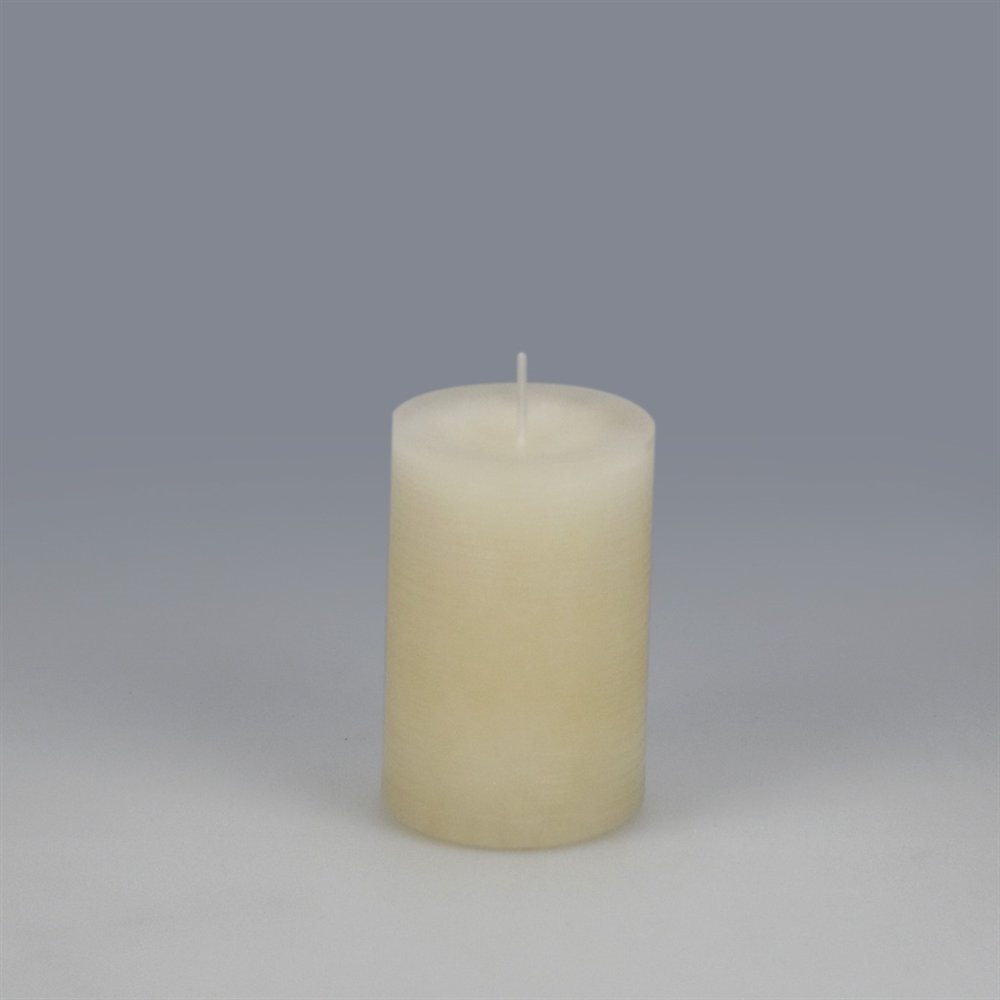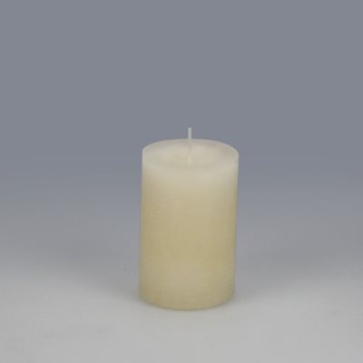 Handgegossene Kerze mit gerillter Oberfläche (feine Querrille). Durchgefärbt, hell/dunkel marmoriert.