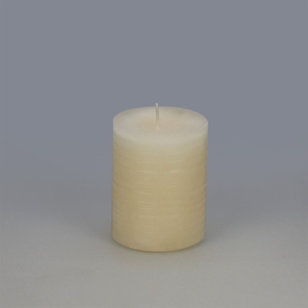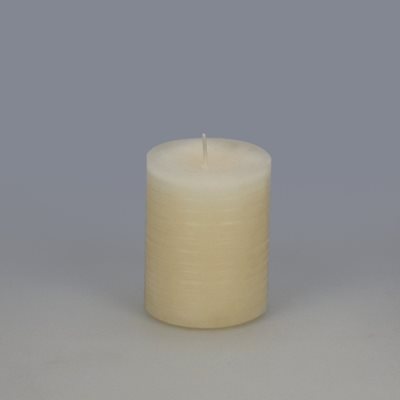 Handgegossene Kerze mit gerillter Oberfläche (feine Querrille). Durchgefärbt, hell/dunkel marmoriert.