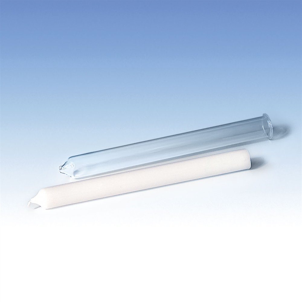 Aus Spezialglas, feuerfest. Zum Giessen von Paraffin- und Paraffin/Stearin-Kerzen.
