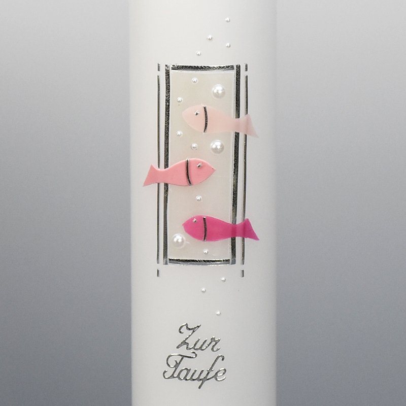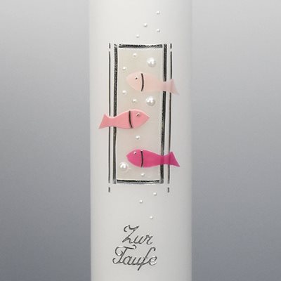 Taufkerze Nr. 18Ø 45 mm H 240 mm, weiss, handverziert