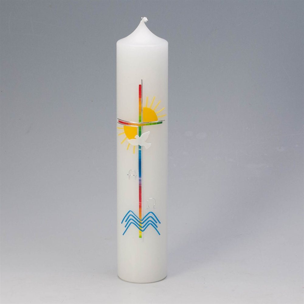 Taufkerze Nr. 22Ø 45 mm H 240 mm, weiss, handverziert