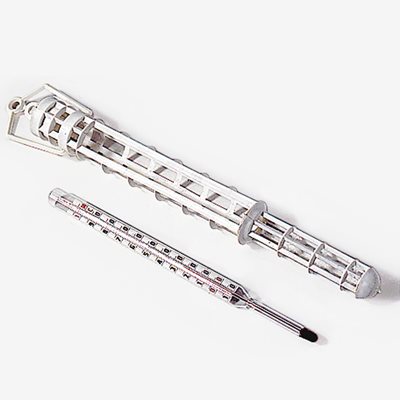 In Kunststoffgehäuse. Zur Überwachung der Wachstemperatur, ohne Quecksilber.
