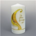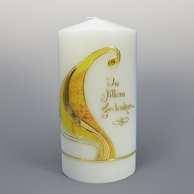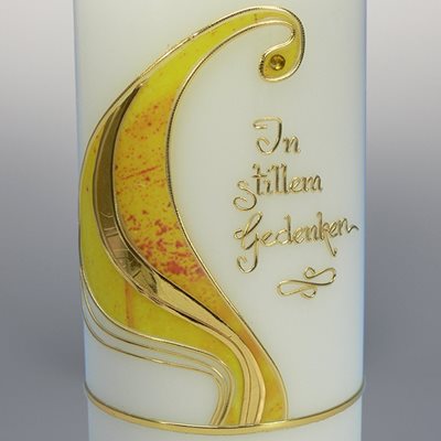 Die Kerze kann auf Wunsch in gold oder silber beschriftet werden. Preis für Beschriftung: