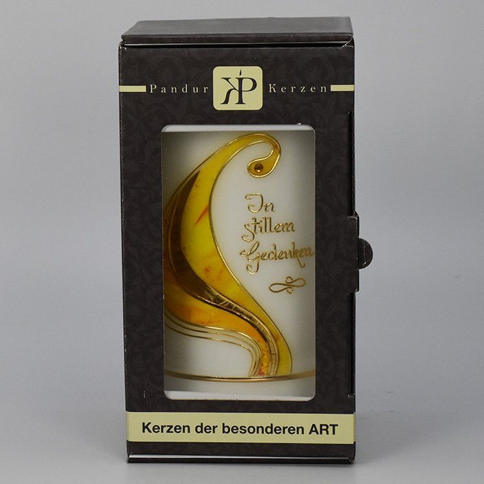 Trauerkerze Nr. 10Ø 100 mm, H 200 mm, weiss, handverziert. In Geschenkbox
