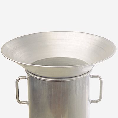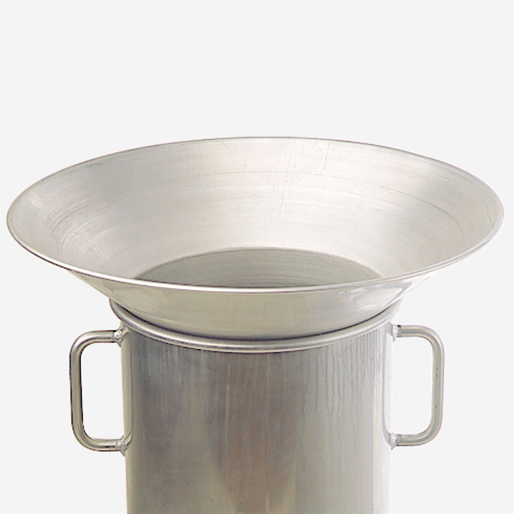 Aluminium nahtlos gezogen, einsteckbar. Aussendurchmesser 45 cm. Tropfringe verhindern die Verunreinigung von Wasserbad, Wachsschmelzgerät und Fussboden.