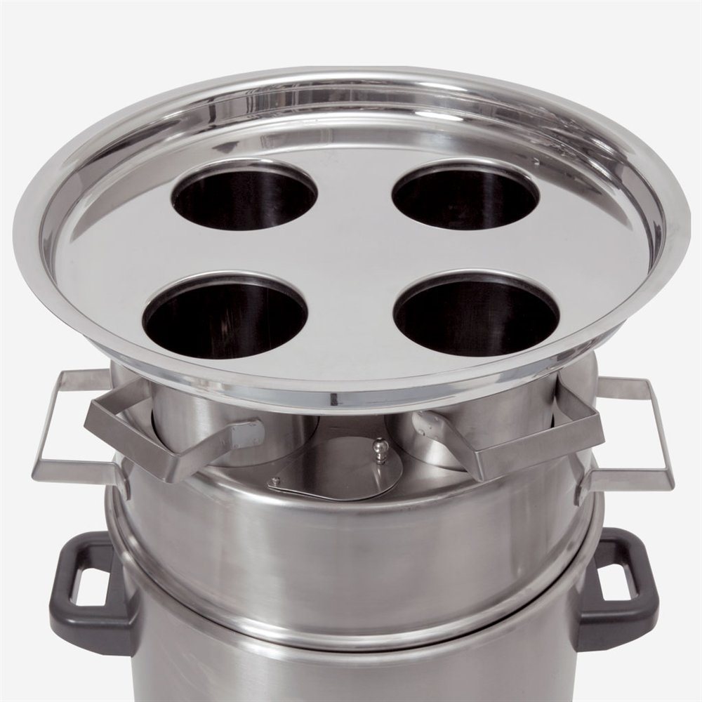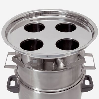 Einsteckbar. Aussendurchmesser 44 cm. Tropfringe verhindern die Verunreinigung von Wasserbad, Wachsschmelzgerät und Fussboden.