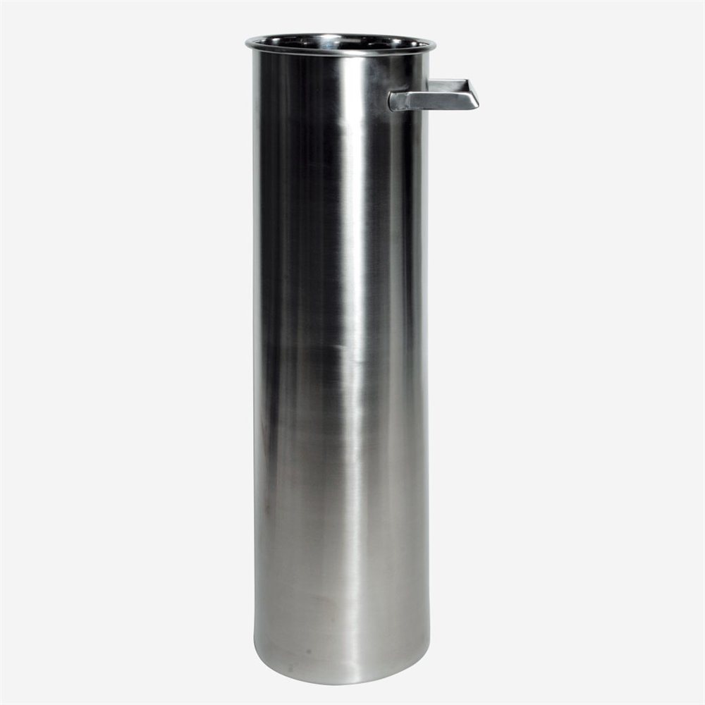 In Edelstahl. Wandstärke 1,2 mm, mit Bördelrand und angeschweisstem Griff.