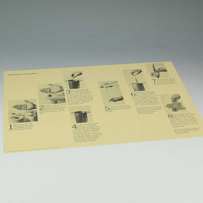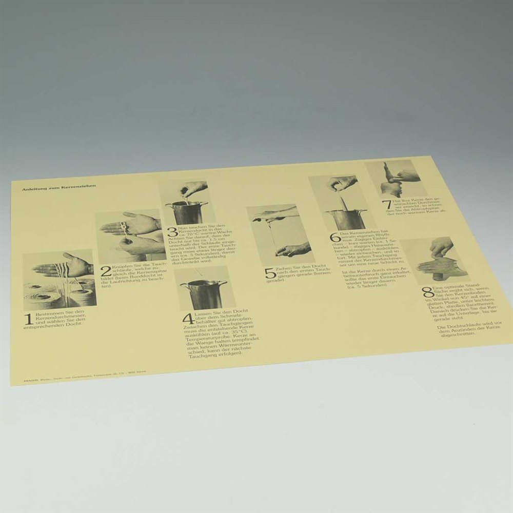 Size 42 x 29.7 cm. With detailed instructions. On special paper, tear-proof and water-resistant. Suitable for public candle-dipping events. Also available in French, German and Italian.