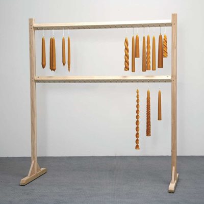 Suitable for public candle-dipping events, schools, homes, sheltered workshops, etc. Robust design in solid wood. Easy to assemble and dismantle. Hooks on front and rear.