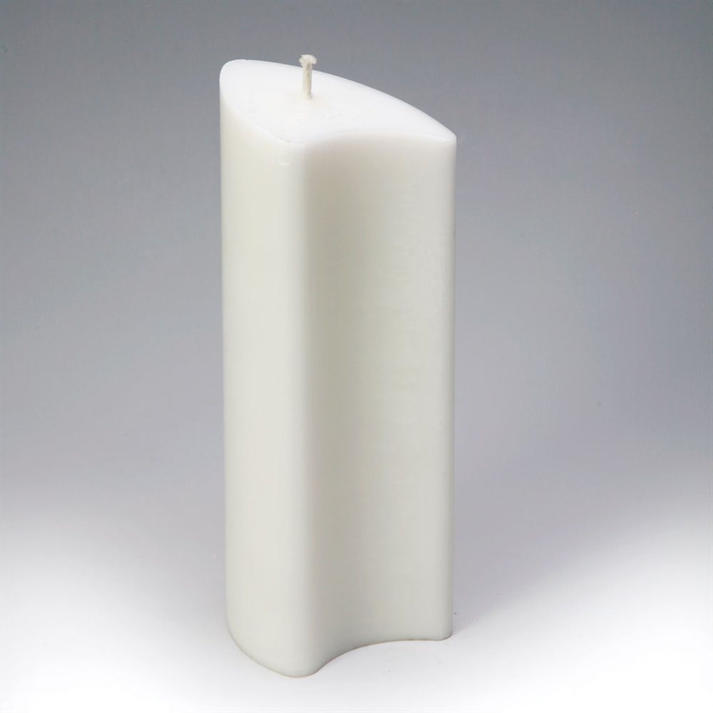White, hand-moulded in high-grade paraffin/stearin wax (80/20).