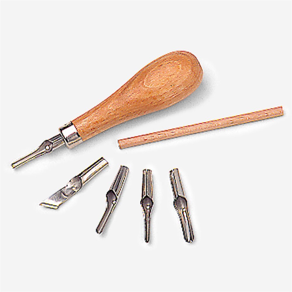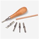 Five different blades. Wooden handle with blade ejector.