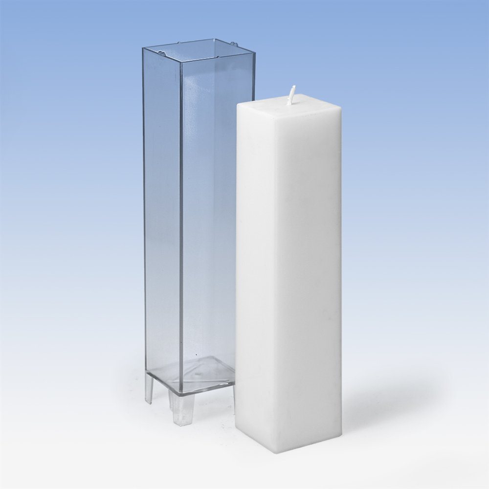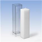 Polycarbonate, transparent. For pouring paraffin and paraffin/stearin candles (heat-resistant up to 120°C). The specified flat wick refers to paraffin and paraffin/stearin wax.