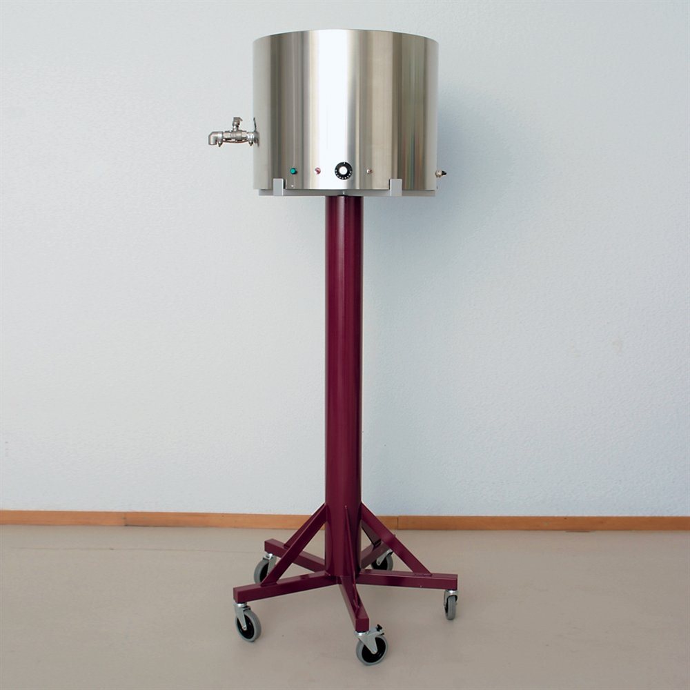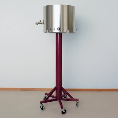 To raise the position of the melting vat when working with the drain tube. For model 24 melting vats, five casters with locking brakes, distance from floor to vat: 140 cm.