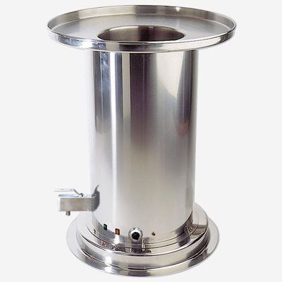 For continuous operation, maintenance-free, 1 year guarantee. Highly robust design in stainless steel, twin-walled, great stability, wide drip bowl of 66 cm, electrically heated, temperature control 30 - 110°C, safety thermostat, overload protection and indicator light.