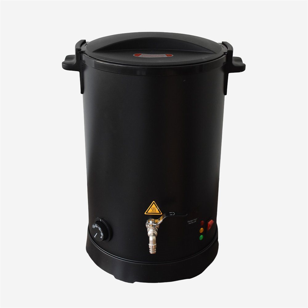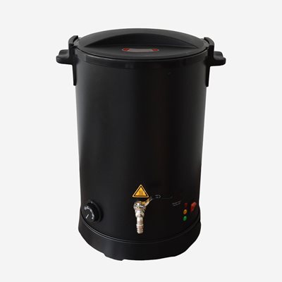 Safety thermostat, overheating protection, indicator light and heated outlet tap. Base, handles and lid made of plastic.