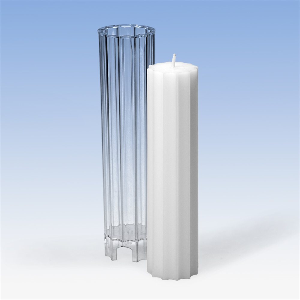 Polycarbonate, transparent. For pouring paraffin and paraffin/stearin candles (heat-resistant up to 120°C). The specified flat wick refers to paraffin and paraffin/stearin wax.