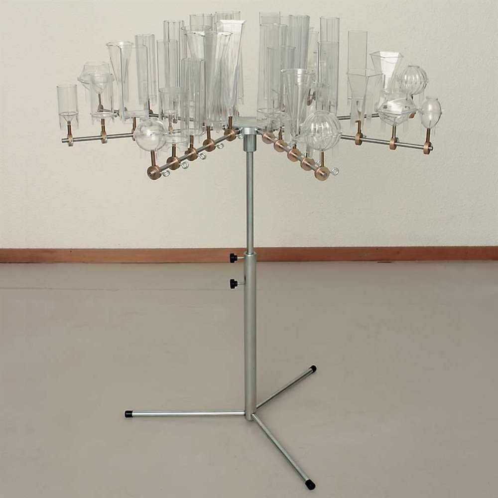 Pour la confection de bougies en séries, dans moules en polycarbonate. Exécution solide en métal, modèle tournant, dix branches, hauteur réglable (entre 70 cm et 105 cm), y c. 40 fixations, métal.